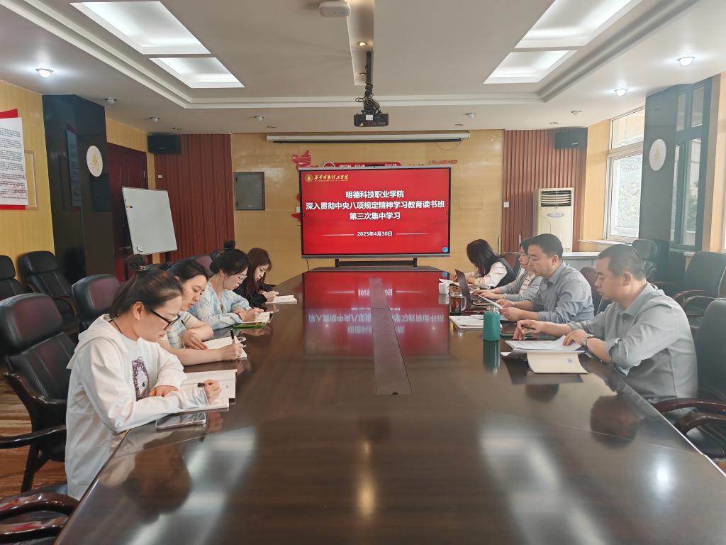 4月30日,明德科技职业学院举办的深入贯彻中央八项规定精神学习教育专题读书班圆满完成各项日常安排。学院党总支委员、各党支部书记、团委...
