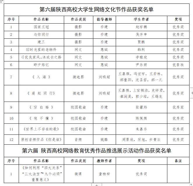 学校师生在第六届“全国大学生网络文化节”中喜获佳绩
