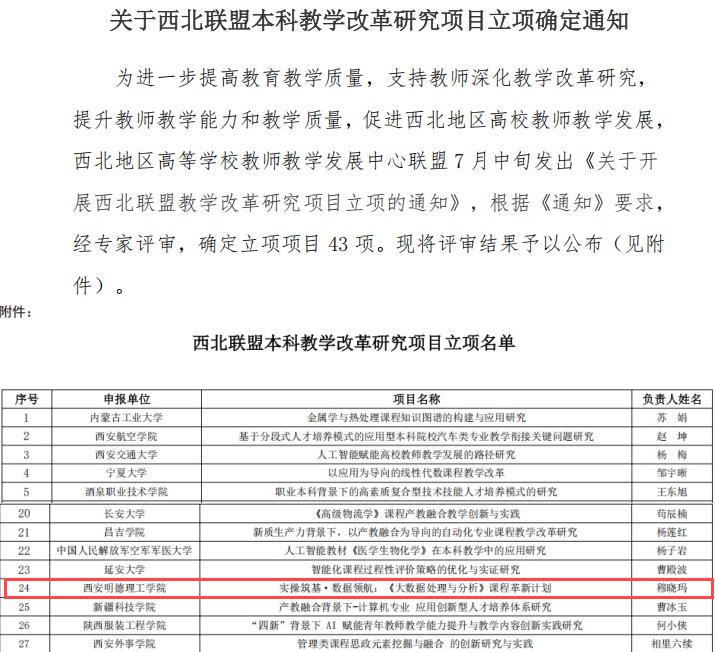LETOU官网1项本科教学改革项目获西北高校联盟立项
