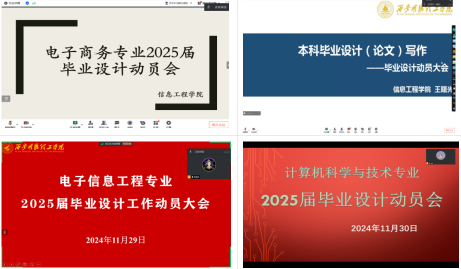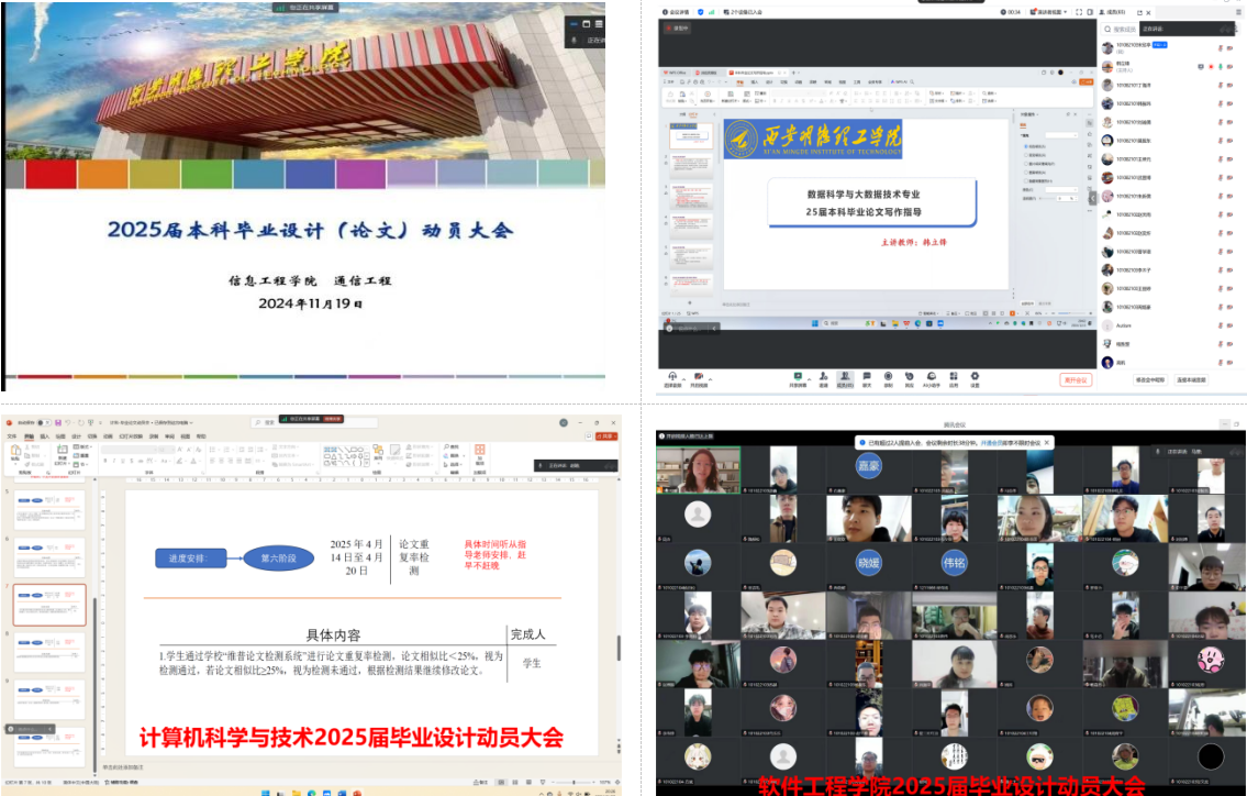 为切实提高2025届毕业各环节教学效果与质量,11月28日至12月2日,信息工程学院开展了全体教师动员大会和各专业毕业生动员大会,重点部署毕业设计相关工作。