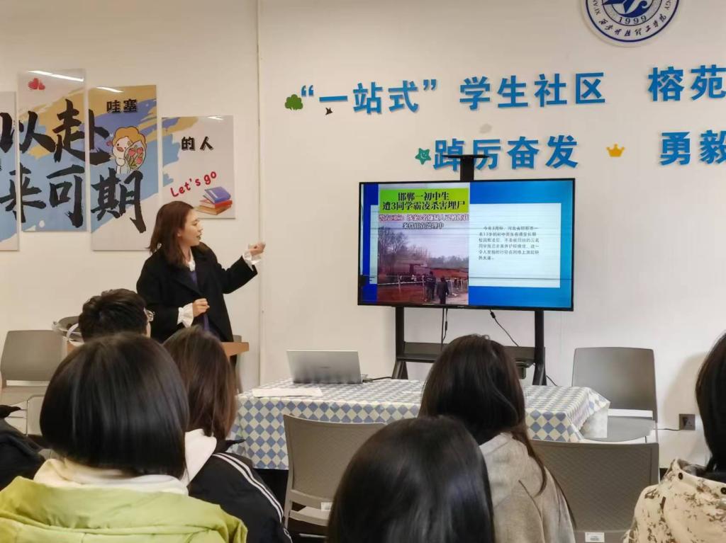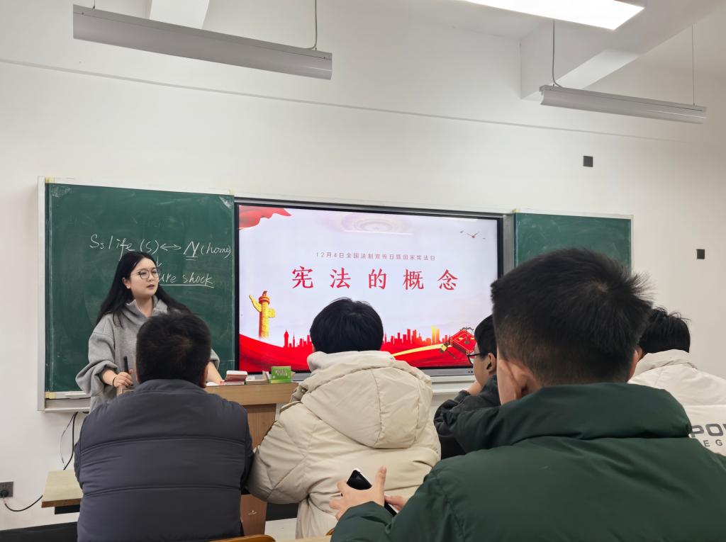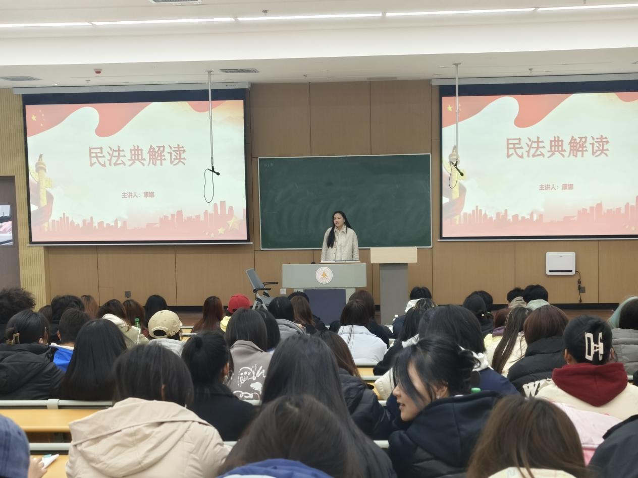康娜老师以“解读民法典,守护生活权益”为题,为高等职业技术学院的学生全面解析了民法典的核心内容和精神;吴梦茜老师则通过“余华英案的法治思考”,引导信息工程学院学生们深入思考宪法精神在司法实践中的体现;张剑蓉老师围绕“维护宪法权威,树立法治思维”,鼓励经济与管理学院的学生积极培养法治思维,追求公平正义;车海肖老师以“维护社会公平正义的最后一道防线”为题,为语言文化与传播学院的学生揭示了司法公正的重要性;景怡欣老师面向艺术与设计学院的学生,通过“学宪法讲宪法”的生动宣讲,不仅强化了宪法在规范国家权力、保障公民权益中的根本地位,更在学生们心中种下了坚实的法治理念之种。