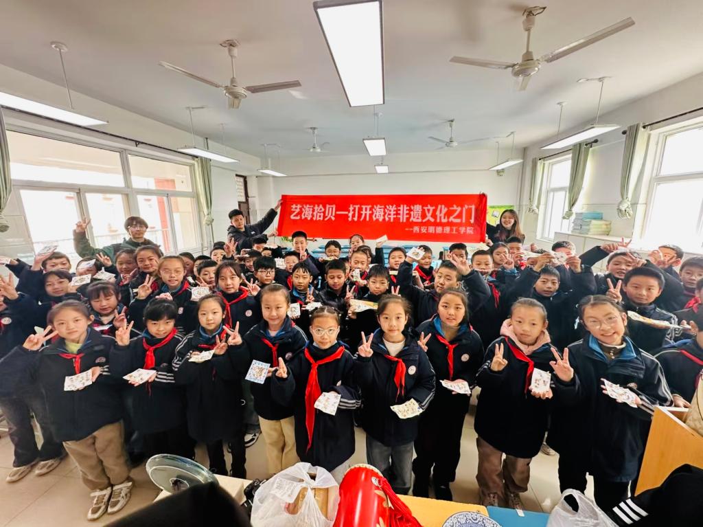 12月5日,LETOU国际米兰官网经济与管理学院“艺海拾贝——打开海洋非遗文化之门”非遗文化传承实践队一行5人赴渭南高新小学开展“贝韵瓷彩—鼓韵风华非遗集”进校园活动,活动特别邀请了渭南高新小学六年级四班、四年级一班及二年级四班的师生共155人参与。