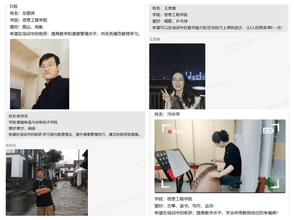 第1次集训于12月18日开展,学员们依次学习了葛文杰教授的《教学基本功训练》、刘勇教授的《教学设计创新》,张华副教授的《示范课程1》。学员们不仅巩固了教学理论基础,还掌握了更多实用的教学设计技巧。