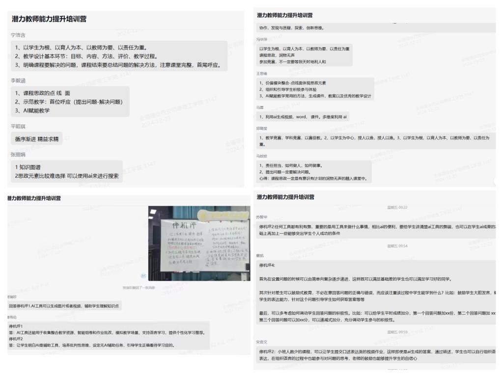 同时针对课堂上学员们提出的开放性探讨问题,我们设置“停机坪”,将问题发布在课堂群中让大家集思广益。