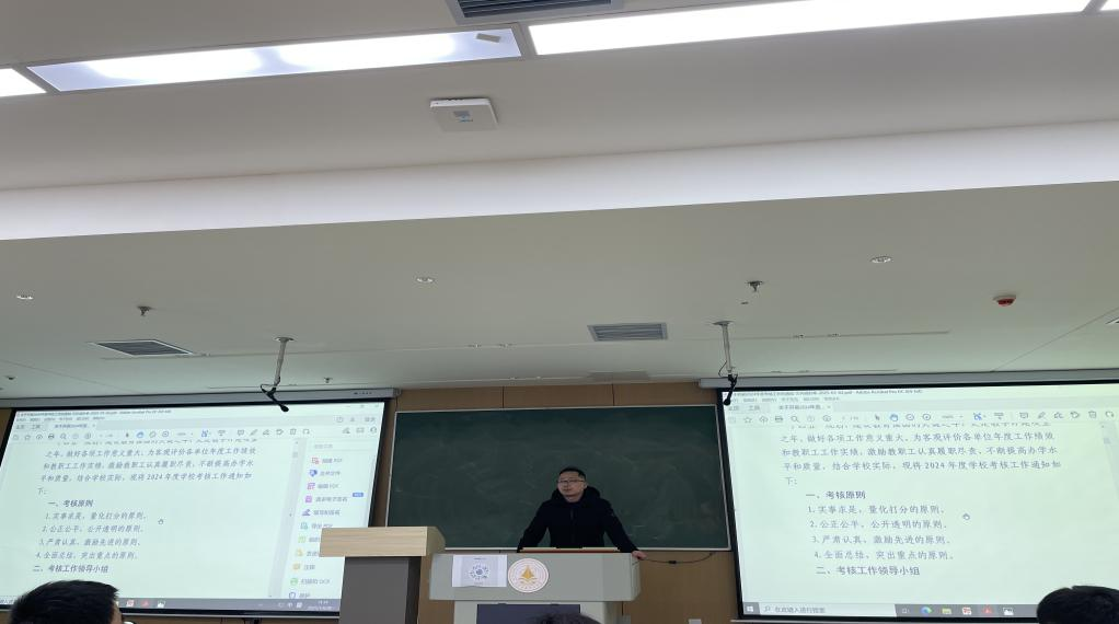 会议伊始,李建勇副向全体教职工传达了学院关于2024年度考核工作的具体部署。他强调,年度考核是评价教职工工作绩效、激励教职工积极进取的重要手段,要求全体教职工务必认真对待,严格按照考核标准和程序进行操作。同时,就考核的具体流程、时间安排以及注意事项进行了详细说明,确保每位教职工都能清晰了解考核的具体要求。