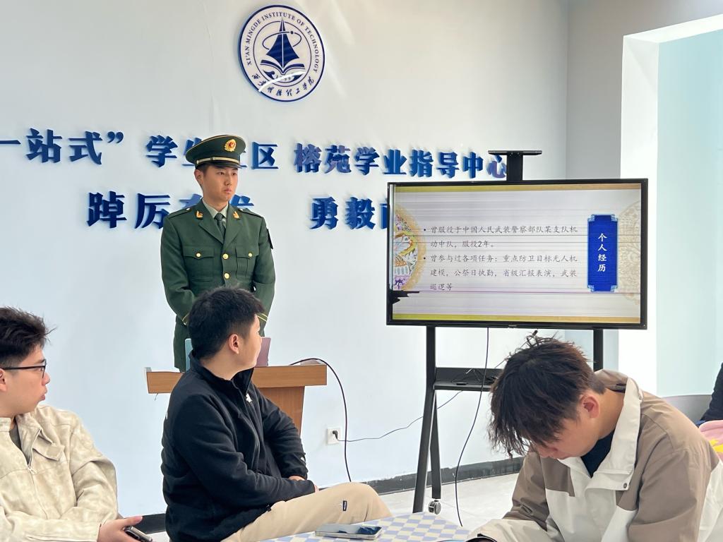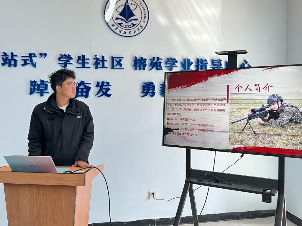 毛泽飞同学则着重分享了与少数民族战友并肩作战、相互扶持的温暖瞬间,展现了民族团结在军营中的生动实践。他们表示,军旅生活不仅锻炼了身体素质,更铸就了钢铁般的意志和深厚的战友情谊。两位退役士兵的分享,让在场的同学们对“家国情怀”和“民族担当”有了更深的理解。