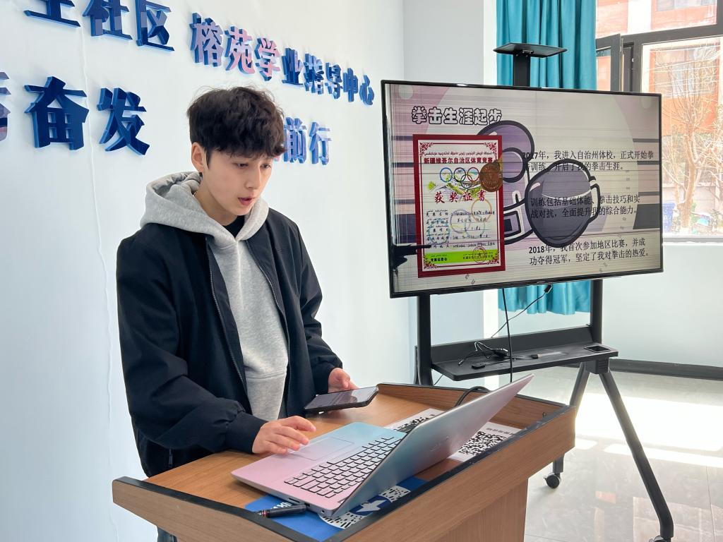 来自新疆的美合日班(维吾尔族)同学,就读明德科技职业学院,她分享了自己从小在拳击训练中的酸甜苦辣,以及如何在竞技中克服困难、突破自我。在学校她参加了校武术队,收获新的技能同时,也收获了新的友谊。她的故事激励着同学们在学习和生活中,无论遇到多大的挑战,都要以顽强的毅力和拼搏的精神去面对,勇攀高峰。