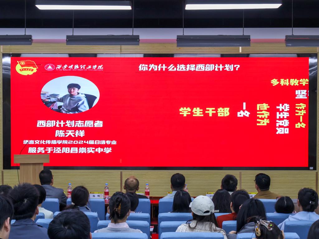 政策解读入心,就业保障护航。校团委副书记刘雄围绕西部计划的招募条件、服务领域、政策优待等内容展开详细解读,并重点介绍了学校对志愿者的专项支持措施,包括岗前培训、生活补贴、考研加分及就业帮扶等。招生就业中心主任王育春从职业发展角度分析西部计划对毕业生就业竞争力的提升。现场还设置了互动答疑环节,毕业生们就岗位分配、服务期规划等问题踊跃提问,现场气氛热烈。