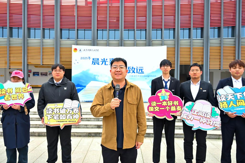 校团委副书记刘雄以亲切而有力的话语,鼓励同学们珍惜清晨时光,积极投入到晨读活动中来,在知识的海洋中不断汲取养分,实现自我成长与进步。随后,他郑重宣布“晨光熹微,书香致远”21天晨读打卡活动正式开始!