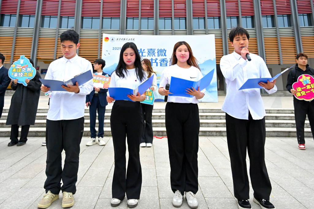 活动在四位同学如诗般的暖场朗诵中拉开帷幕,那抑扬顿挫的诵读,宛如春日微风,轻拂着现场每一位师生的心灵,为活动开启了美好的序章。随后,全体人员肃立,在雄壮激昂的国歌声中,爱国情怀与求知热忱被一同点燃,现场氛围庄严肃穆又满溢激情。