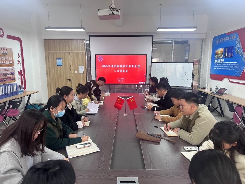 为切实做好清明假期学生教育管理工作,确保学生度过一个安全、文明、有序的假期,信息工程学院于4月1日在明志楼北206会议室召开清明假期学生教育管理工作部署会,对假期相关工作进行全面部署。学院全体辅导员参加,会议由党委副书记高长江主持。