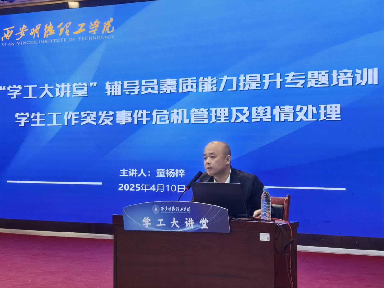 “以学促干强本领、守正创新筑防线”。为进一步提升学生工作干部应对校园突发危机和舆情事件的专业能力,夯实平安校园建设根基,营造良好的育人环境,4月10日上午,学校第三十七期“学工大讲台”辅导员素质能力提升专题培训在建德楼203报告厅举行。党委学生工作部副部长童杨梓以“学生工作突发事件危机管理及舆情处理”为主题作专题培训报告,全体学生工作干部参加培训。