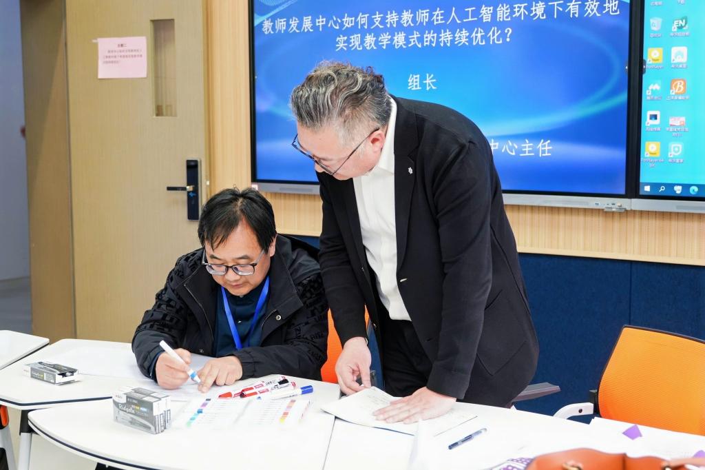 在分组讨论环节围绕“教发中心应提供哪些人工智能培训内容支持教师的教学实践?”“教发中心如何支持教师在人工智能环境下有效地实现教学模式的持续优化?”“教发中心如何建立有效评估教师人工智能教学成果的体系?”三大核心命题展开深度探讨,形成智慧碰撞火花,为教师发展中心改进工作提供新的思路,为系统性推进教学改革提供方法论支撑。