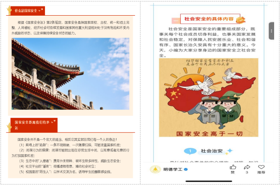 为扩大教育覆盖面,学校还通过官网、微信公众号、宣传栏等平台,发布国家安全教育相关知识和宣传海报,引导师生关注国家安全。