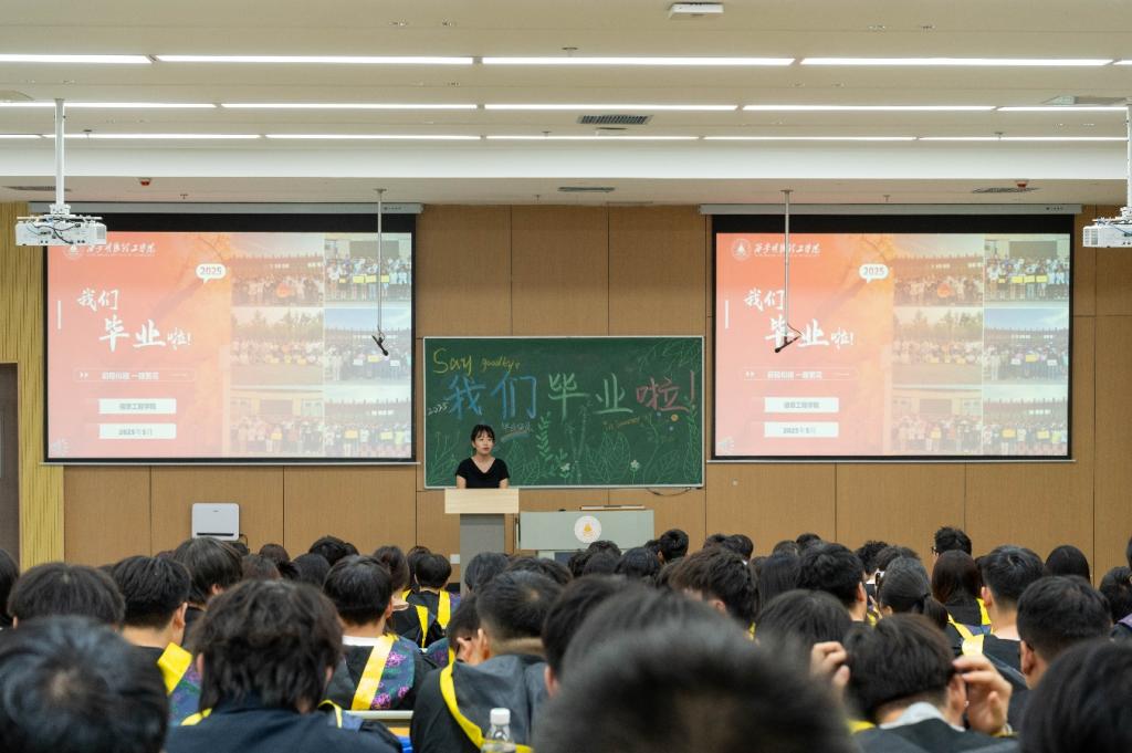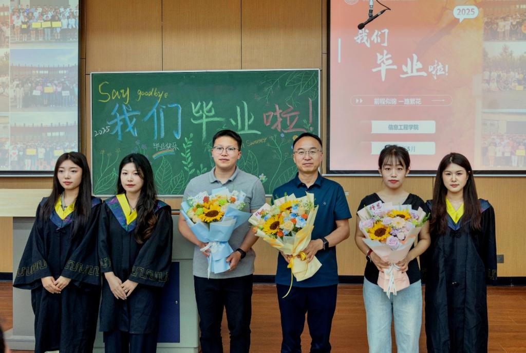 时光荏苒,岁月如歌。在这凤凰花开的季节,5月15日下午,信息工程学院计算机科学与技术专业2025届1-6班256名毕业生在8#102齐聚一堂,在辅导员李娜的主持下,共同迎来了“我们毕业啦”主题班会,共同回首难忘的大学时光,展望充满希望的未来。学院党委书记肖千春、团委书记谭若桐出席。
