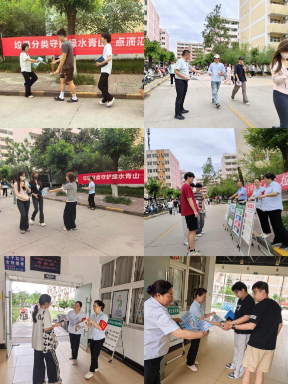 在校园主要道路及垃圾分类投放区域,通过悬挂横幅、分发宣传资料等方式,详尽阐释了可回收物、有害垃圾、厨余垃圾和其他垃圾的分类标准及正确的投放方法。同时,强调了垃圾分类在环境保护和资源循环利用方面的重要性,鼓励师生积极参与到校园垃圾分类的宣传和引导工作中来,积极实践垃圾分类,以保护校园环境。