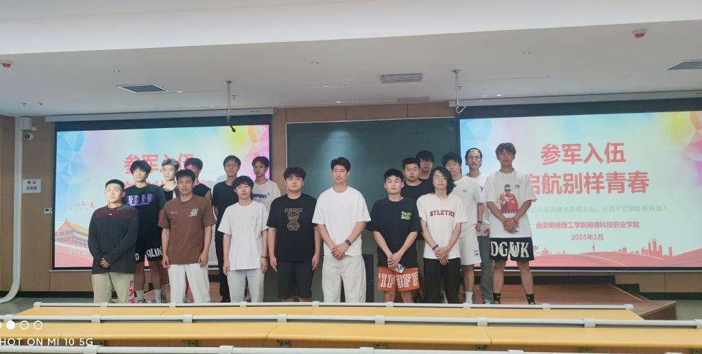 为进一步贯彻落实国家征兵政策,激发青年学子参军报国热情,5月30日下午,明德科技职业学院在8号楼502教室举行了2025年“参军入伍启航别样青春”征兵宣讲会。宣讲会由学院征兵专干李永帆主讲,2023级和2024级有参军意向的学生参加会议。