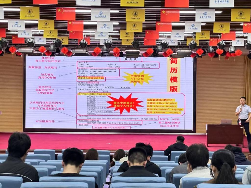 针对毕业生职业定位模糊、发展规划缺失等痛点,资深就业指导师杨晶老师开展了《职业生涯规划与职场核心竞争力塑造》专题讲座。讲座结合当前就业市场趋势,从自我认知、行业分析、目标设定、技能提升等维度展开讲解,通过案例分析、互动测评等形式,引导学生科学制定职业路径,挖掘自身优势。“职业生涯规划”主题中,导师引导毕业生思考自身兴趣、优势,结合市场需求与行业发展趋势,制定合理的职业规划。鼓励毕业生在大学期间积极参与实践项目、实习,积累经验,建立人脉,为未来就业做好充分准备。