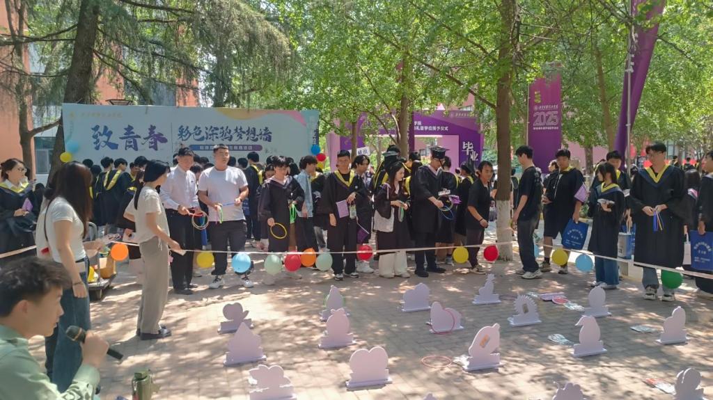 本次活动坚持时代性、思想性、文化性和趣味性的原则,借助表达性艺术、民间套圈游戏、创意广告等方法,聚焦学生的需求和个性特点,搭建了“致青春”彩色涂鸦梦想墙,印制了蕴含“三生教育”元素的创意贴纸,发起了教职员工为毕业生赠予手写贺卡和毕业生为老师回赠AI祝福图活动,开展了“开心套明德礼物”游戏活动,为毕业生带来了一次沉浸式、场景化和靶向性的身心体验。