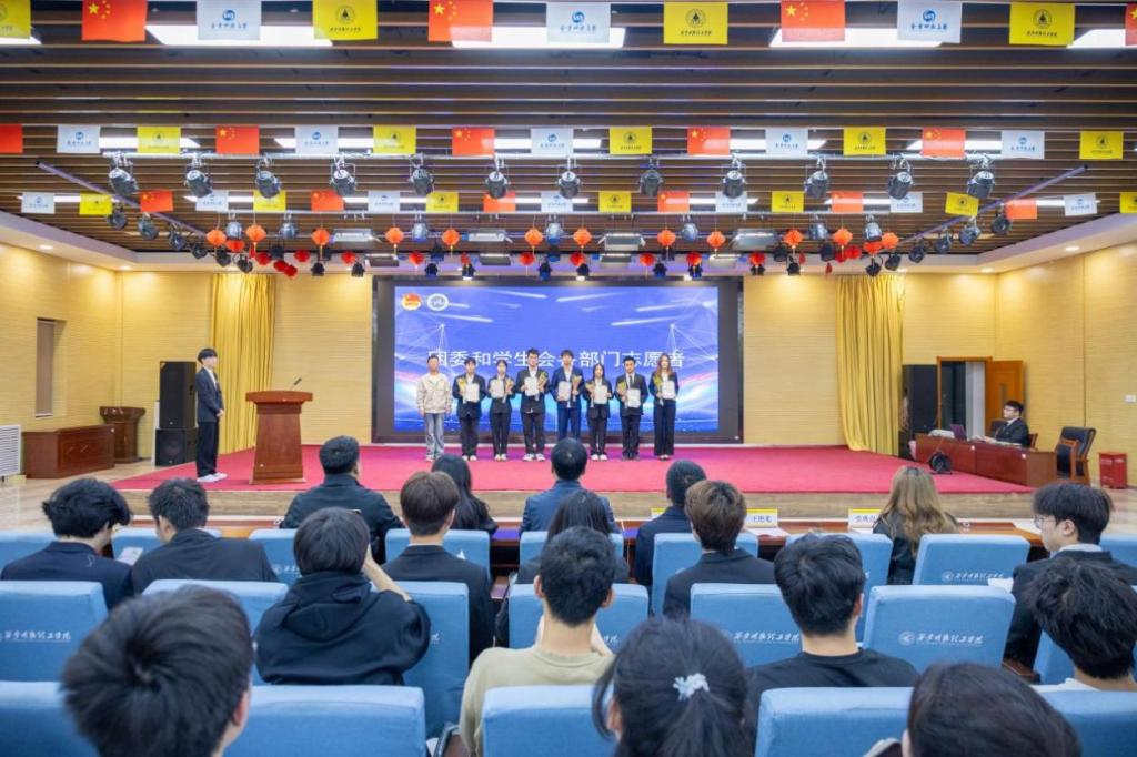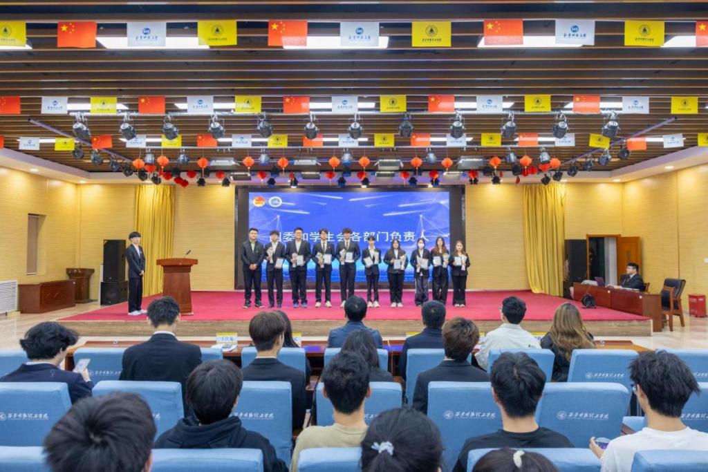 新任学生会主席团成员陈李青和团委组织部负责人翟雕利做了表态发言,表示在未来的工作中,会通过加强自身建设,提升团队凝聚力、深化服务意识,关注同学们的实际需求、丰富校园文化,举办各类有益于同学们成长的活动、弘扬担当精神,积极参与社会实践活动,充分发挥团学组织作用。