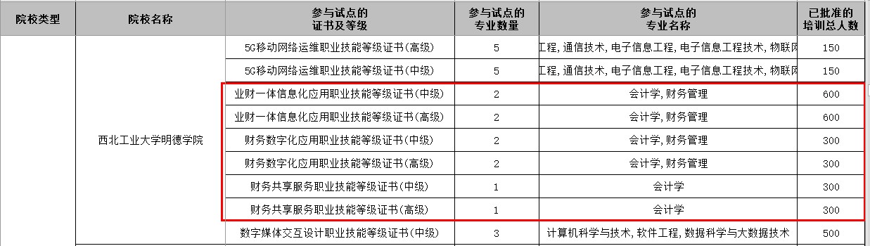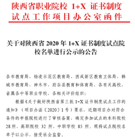 近日,根据《关于做好陕西省第三批1+X证书制度试点工作的通知》(项目办函[2020]1号)要求,陕西省职业院校1+X证书制度试点工作项目办公室公示了陕西省2020年1+X证书制度试点院校,经济与管理学院成功获批“业财一体信息化应用”、“财务数字化应用”、“财务共享服务”等6项职业技能等级证书试点资格。