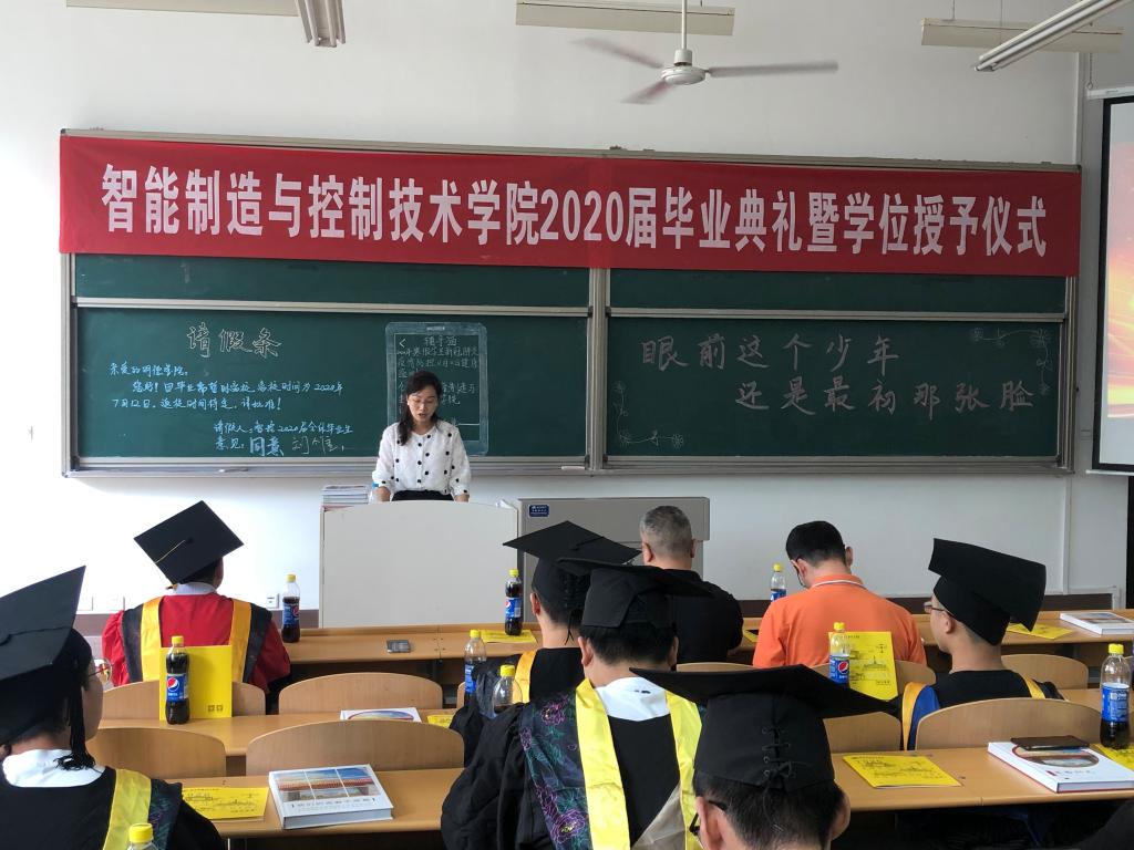 7月12日上午九时,智能制造与控制技术学院在4#教学楼101教室,隆重举行学院2020届毕业典礼暨学位授予仪式。因疫情防控要求,明德学院2020届毕业生毕业典礼暨学位授予仪式在学院明志楼中厅隆重举行,本次典礼采用主副会场加线上直播的方式举行,各二级学院分会场通过新媒体平台对毕业典礼进行了“云”直播。学院副院长朱延波,办公室主任张啭啭,党总支书记陈雪彬,各专业负责人及教师代表,学院2020届毕业生150余人出席了此次分会场的典礼,典礼由毕业班辅导员刘雄主持。