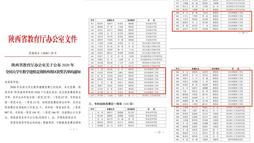 近日,2020年“高教社杯”全国大学生数学建模竞赛成绩揭晓。学院29支代表队参赛,25支参赛队获奖。其中,获陕西省一等奖8项,陕西省二等奖17项,参赛队伍数量、获奖队伍数量,以及获奖比例均创历年新高,同时学院荣获2020全国大学生数学建模竞赛陕西赛区“优秀组织奖”。在陕西省的民办高校中,省奖获奖数量列第一名。
