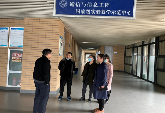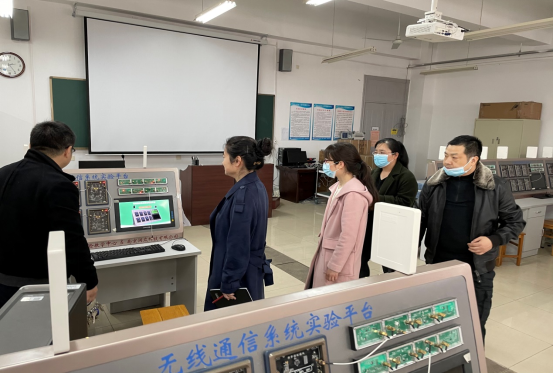 西安电子科技大学通信与信息工程国家级实践教学中心副主任唐军老师热情接待了专业一行人,并对实践教学中心进行了详细的介绍,带领大家参观并讲解了各个通信专业实验室的设计与教学情况。