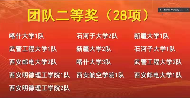 此次CUPT陕西省赛,共16所学校、32支代表队参加;西北地区赛更是有共21所学校、56支代表队参加了角逐;可谓是高手云集,竞争激烈。参赛队员克服了起点低、条件差、时间紧等各种困难,沉着应战,不畏强手,顽强拼搏,充分展现出了学校大学生的精神风貌。经过两天紧张的角逐,最终获得了西北地区赛团体二等奖2项,省赛团体二等奖2项,个人二等奖12项的好成绩。