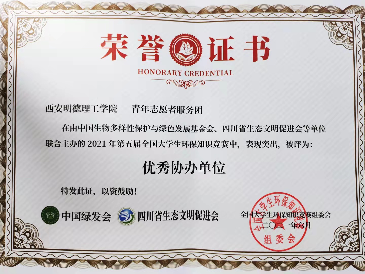 为贯彻落实新时代生态文明发展战略,不断深化环保公众参与力度,坚持全民共治,提升大学生环保意识,展现当代青年的环保担当与青春风采,影响和带动更多的人参与到环保事业中来,壮大中国环保工作力量,日前,由中国生物多样性保护与绿色发展基金会、四川省生态文明促进会等单位联合主办,全国近六百万名大学生参加、一千多所高校团委社团组织协办,多家媒体宣传的“2021年第五届全国大学生环保知识竞赛”落下帷幕。