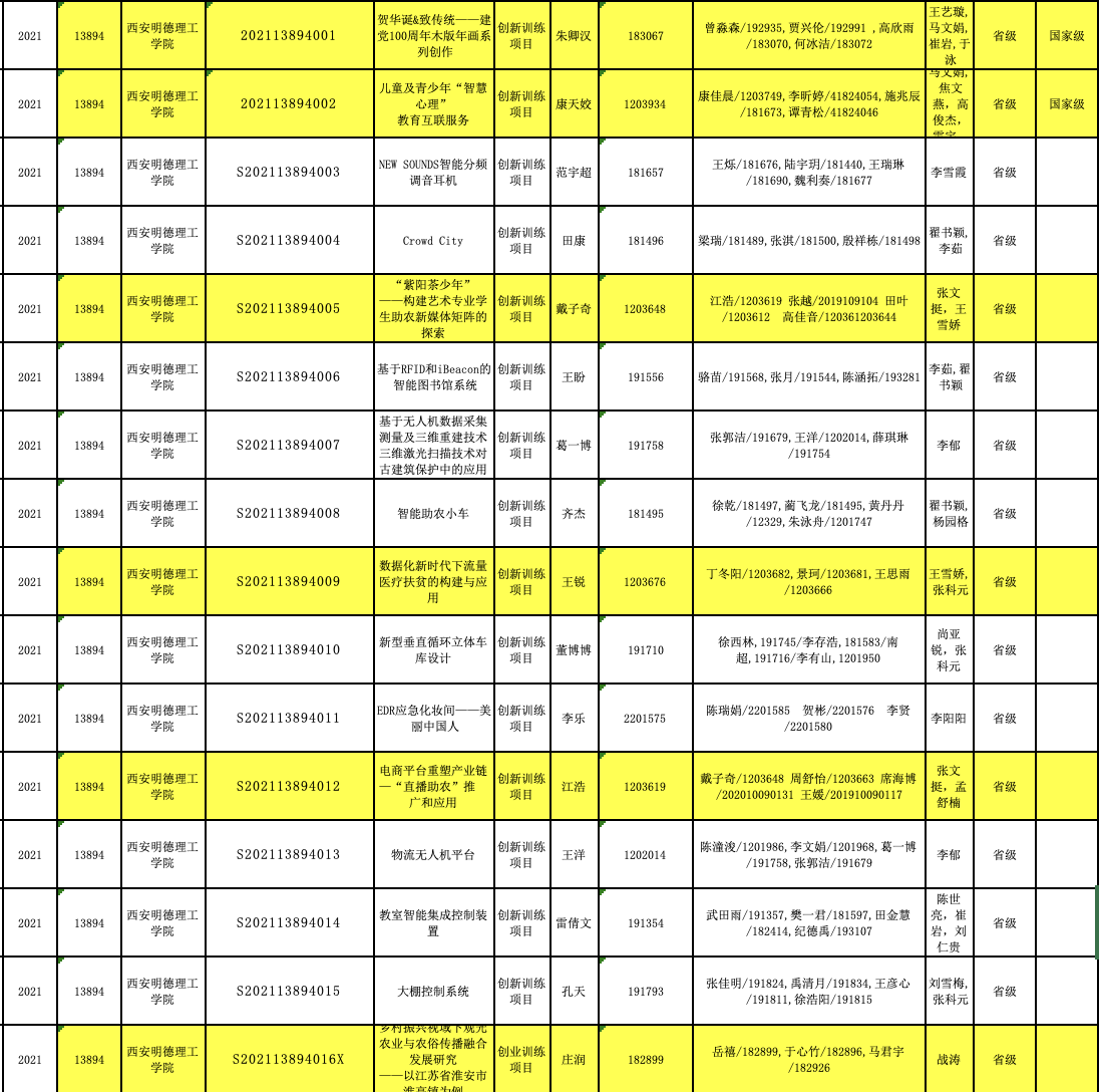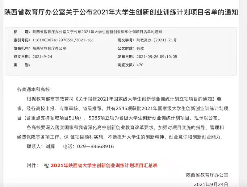 近日,陕西省教育厅发布的2021年大学生创新创业训练计划项目名单的通知中,LETOU官网获批17项大学生创新创业训练计划项目。其中,艺术与设计学院斩获8项创新创业训练计划项目:国家级2项(含省级),省级6项。
