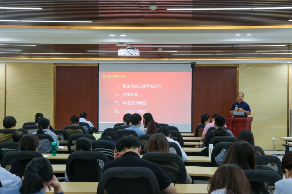 9月30日中午,信息工程学院在明志楼311报告厅召开新学期工作大会,总结评价2021年上半年工作,安排部署本学期工作。院长王丽芳、副院长魏瑾、黄烨、党委书记李波及全体教职工参加了会议。会议由办公室主任尹莹主持。