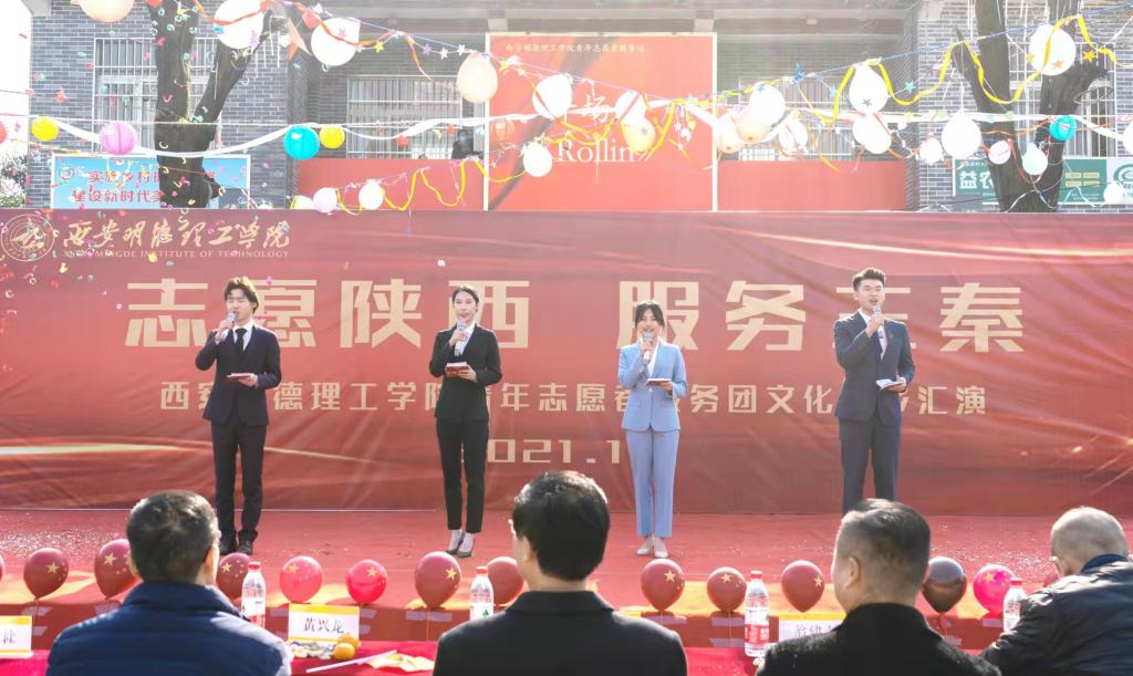 在第36个世界国际志愿者日来临之际,为进一步丰富群众文化生活,助力乡村振兴建设,积极响应共青团陕西省委“志愿陕西服务三秦”的号召,12月4日,学校青年志愿者服务团在西安市长安区滦镇翁家寨村委会广场举办了以“志愿陕西服务三秦”为主题的文化下乡文艺汇演活动。