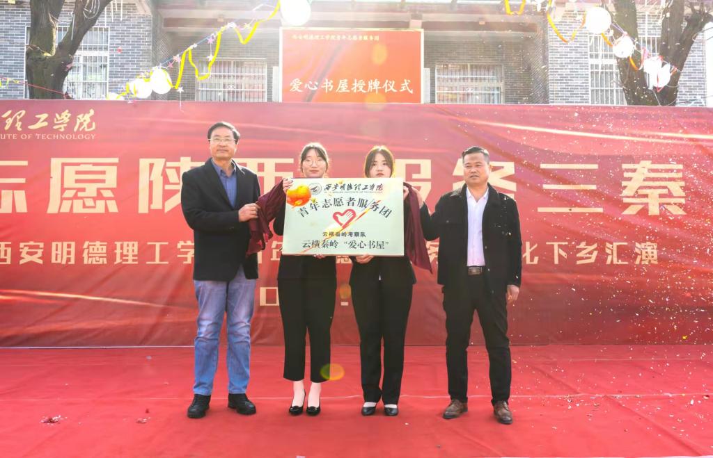 爱心无止境,捐赠见真情。在汇演活动开始前,获得陕西省教育厅2021年大学生创新创业训练计划创业实践项目《云横秦岭考察队》,代表学校青年志愿者服务团在翁家寨村成立了第一所“云横秦岭爱心书屋”,旨在为农村居民能更好的接受文化教育。