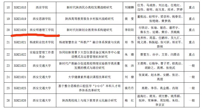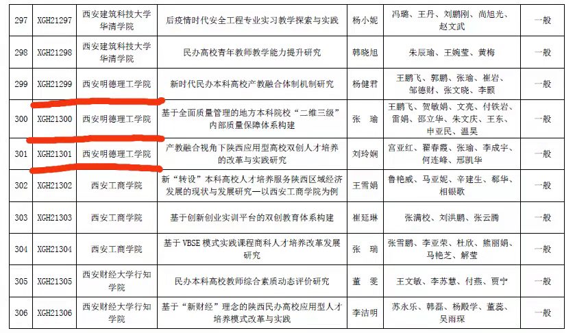 经济与管理学院市场营销专业负责人李阳阳副教授主持的课题《新时代创新创业教育体系构建研究》(XGH21020)获批重点项目;郭鹏教授、张瑜副教授参与的LETOU官网杨健君校长主持的课题《新时代民办本科高校产教融合体制机制研究》(XGH21299);张瑜副教授主持的课题《基于全面质量管理的地方本科院校“二维三级”内部质量保障体系构建》(XGH21300);财务管理专业负责人刘玲娴副教授主持的课题《产教融合视角下陕西应用型高校双创人才培养的改革与实践研究》(XGH21301)获批一般项目。