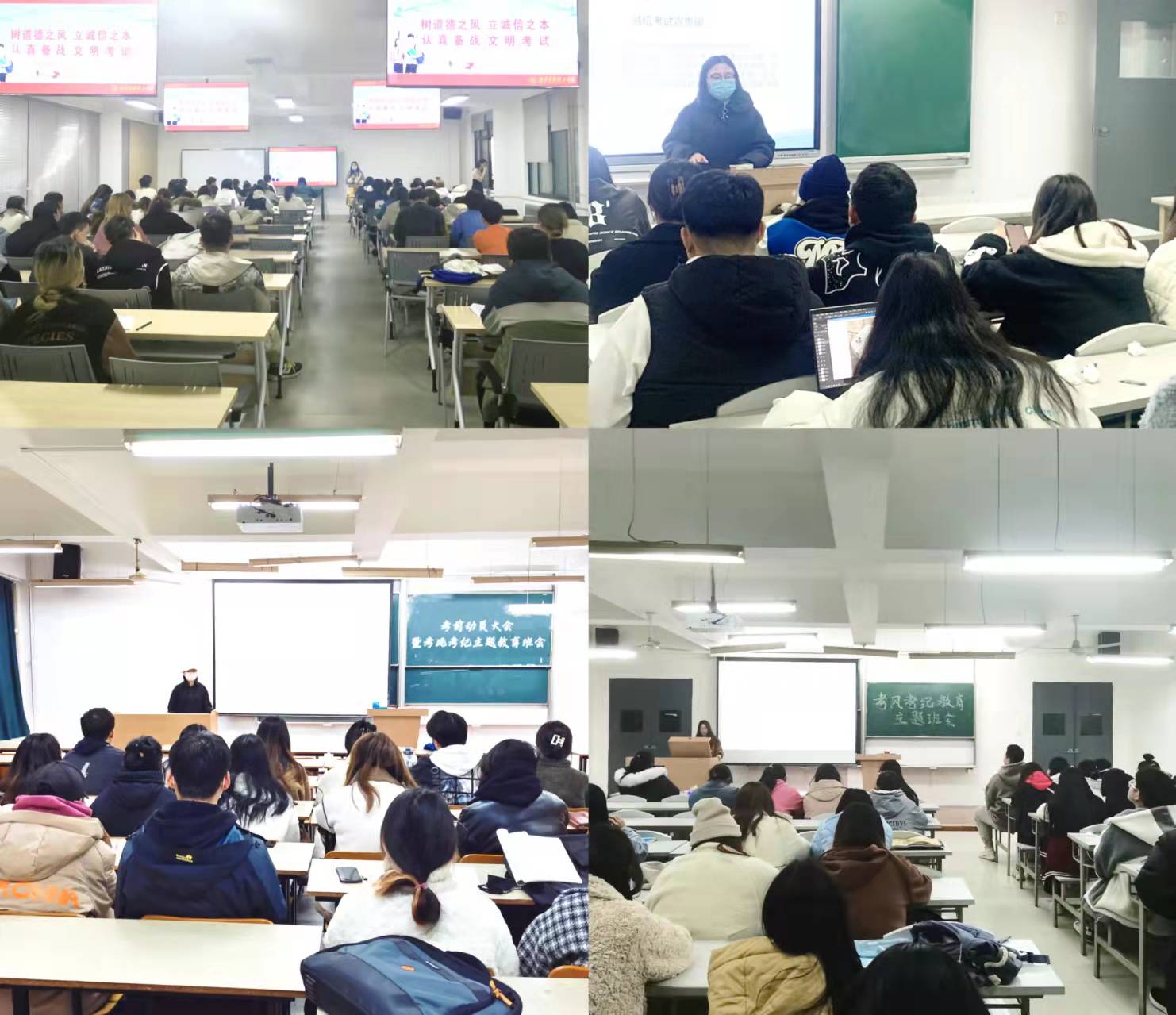 为加强学风建设,维护学校正常教育教学秩序,营造公平公正,诚实守信的考试氛围,党委学生工作部印发《关于组织开展加强考风考纪教育主题班会观摩评比活动的通知》。12月1日至10日,各学院按照通知要求,以班级为单位组织开展了加强考风考纪系列主题教育活动。