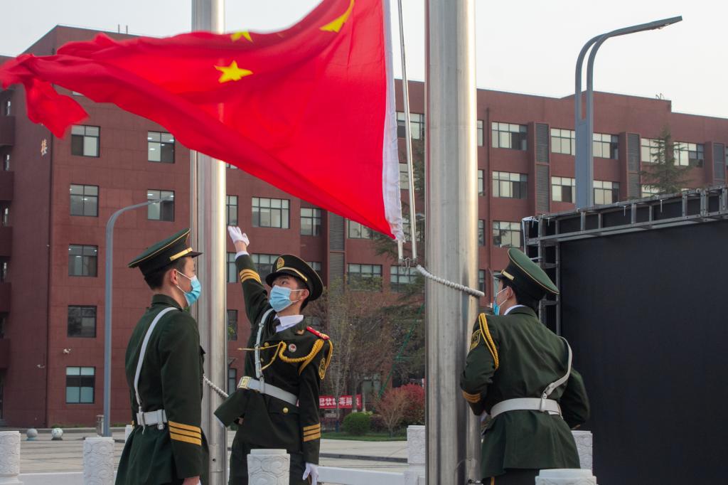 升旗仪式随着《歌唱祖国》的奏响拉开帷幕,国旗护卫队踢着整齐划一、铿锵有力的步伐,迎着明德清晨的第一缕阳光来到升旗台前,鲜艳的五星红旗缓缓上升,迎风飘扬,成为蓝天下一抹绚丽的色彩。智能制造与控制技术学院学生张政代表全体同学进行了国旗下的演讲,他说,当代青年身处一个大有可为的新时代,应注重当下的点点滴滴,把握当下、以当下为机遇,传承中华文化,积极探索有为的可能,直至有为。作为学生,学习就是天职,把握当下,专注学业,不断挑战自我,充实自己,为实现人生价值和中华民族伟大复兴的中国梦打下坚实础。