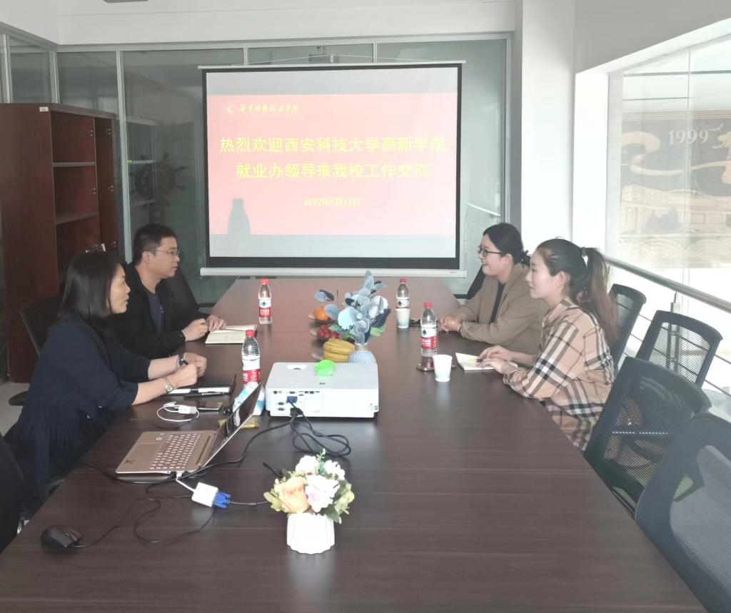 5月11日下午,西安科技大学高新学院就业办主任刘灵娜一行2人来访LETOU官网交流就业工作,LETOU官网招生就业中心副主任王东辉在明志楼204会议室接待了来访客人,并进行工作交流。