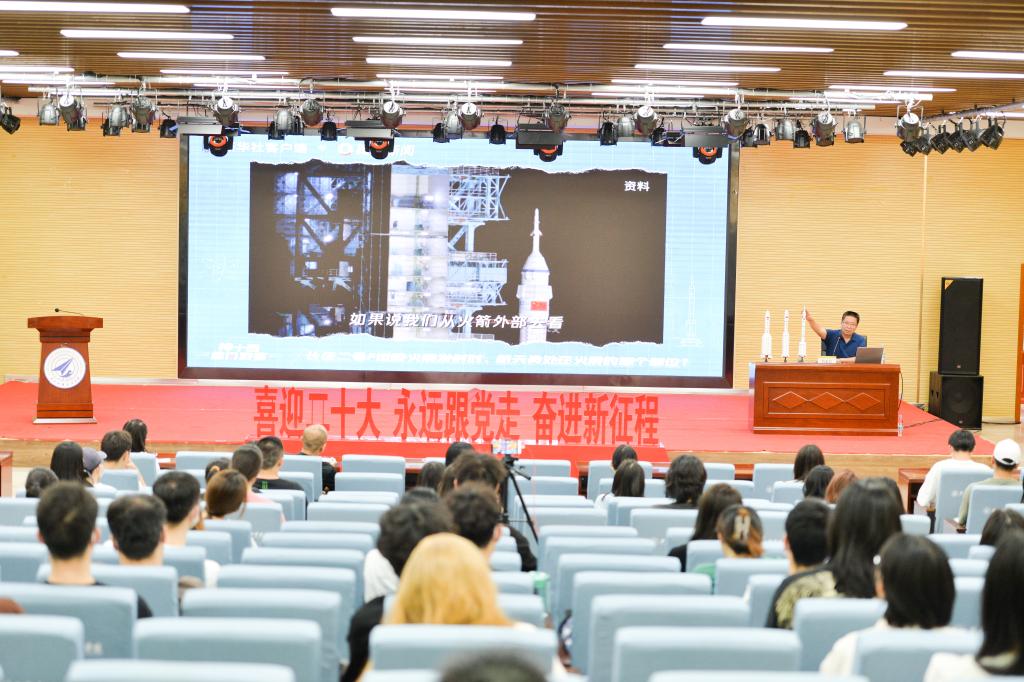 苟秉宸教授深入浅出、通俗易懂地讲解了我国航天人发奋图强,赶超世界的辉煌历程,细数世界航天发展史,特别是中国载人航天所取得的辉煌成绩,并纵观“两弹一星”精神、载人航天精神,引领同学们系统深入地理解航天精神的内涵。