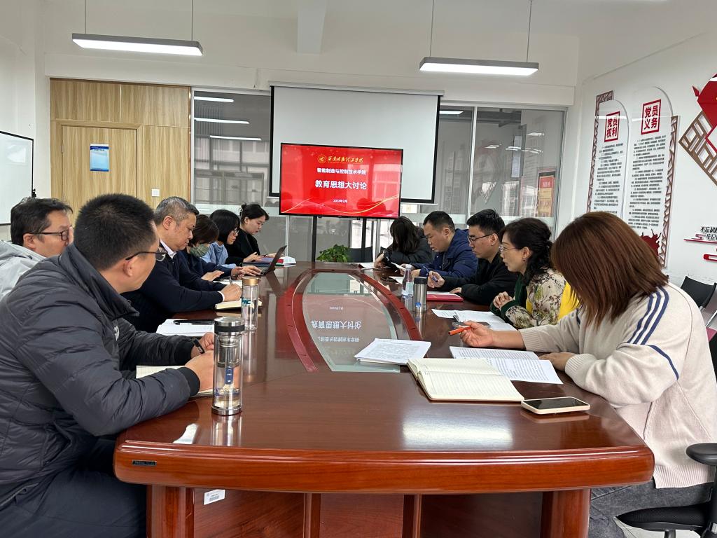 为深入学习贯彻党的二十大精神,聚焦立德树人根本任务,自觉履行为党育人为国育才的责任使命,切实把全院上下思想统一到党的二十大精神上来。2月23日下午,智能制造与控制技术学院召开党委理论学习中心组(扩大)会议,深入开展教育思想大讨论。学院党委书记陈雪彬、副院长殷锐、副书记曾凯、办公室主任赵婷以及各专业负责人、各党支部书记参加了讨论活动,会议由党委书记陈雪彬、副院长殷锐共同主持。