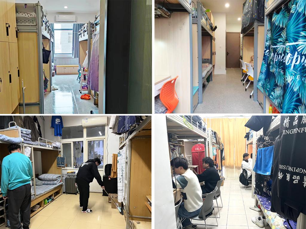全面走访,认真督促检查。辅导员对所带班级学生宿舍进行全面走访,督促学生认真打扫宿舍卫生,并对学生宿舍内部、阳台、楼道、洗漱区、卫生间等区域的卫生打扫情况及是否存在安全隐患进行检查。