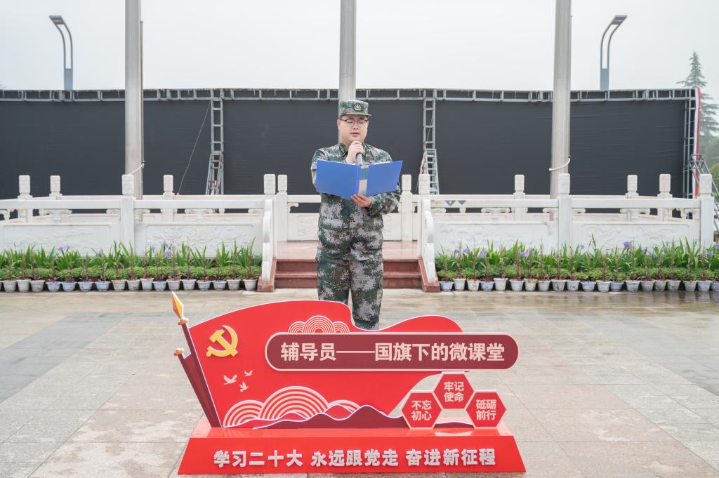 军训团三营十一连指导员、经济与管理学院辅导员杨亚军,以“厚植爱国情怀,砥砺强国之志”为主题,进行国旗下的微课堂分享,他提到,作为新时代的青年学子,继承并发扬五四精神是我们的责任,将其进一步实践和丰富是我们的使命,希望同学们一定要坚定理想信念,厚植爱国主义情怀;锤炼品格修为,涵养高尚情操;练就过硬本领,夯实专业素质。更要从历史深处赓续五四精神血脉,继承光辉传统,牢记习近平总书记嘱托,坚定不移听党话、跟党走,立志做有理想、敢担当、能吃苦、肯奋斗的新时代好青年。