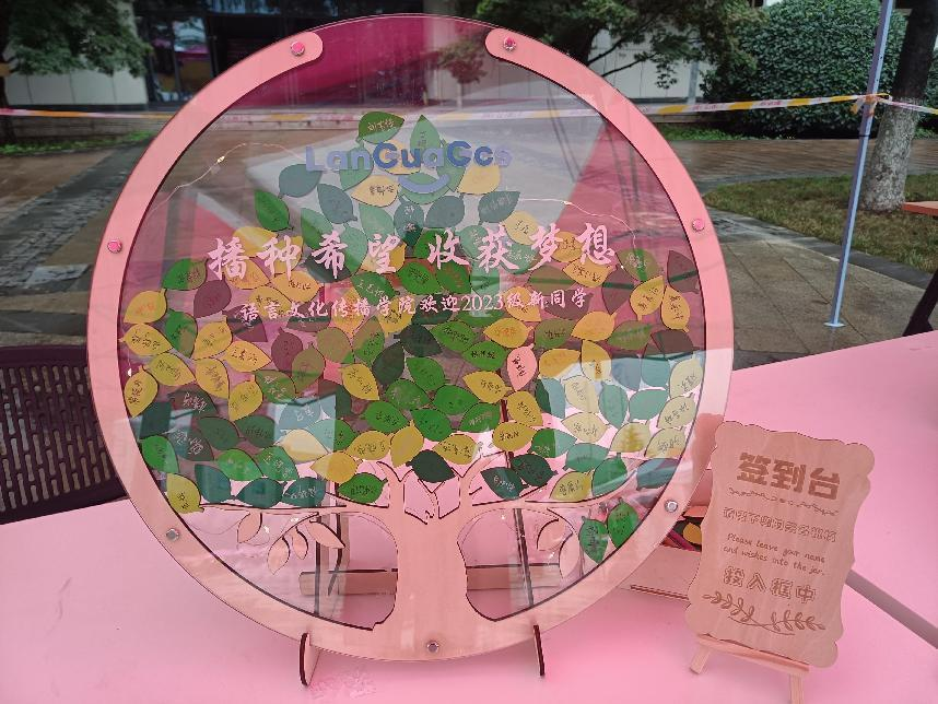 今年的迎新工作,我院结合往年的迎新工作,在推行多项人性化举措的同时也加入了一些体现学院特色的独特创意。我院新生接待处的帐篷上装饰着形态各异的kt板,上面用各国语言写着“欢迎新同学”、“从此语传人”等标语。同时,我院在签到处设立了打卡签到的签到板,上面的大树图案寓意着“播种希望,收获梦想”,同学们纷纷在签到板处合影留念,记录下梦想启航的最初瞬间。“少知而迷,不知而盲,无知而乱”,我院为每一位新生都准备了新生大礼包——精美的笔记本和钢笔,望新生们在未来的四年里能知行合一,学思践悟,以梦为马,不负韶华。
