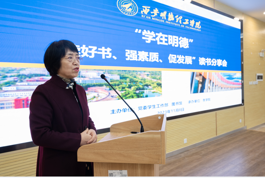 学校图书馆馆长王爱霞教授对我们本次分享会做指导讲话。王馆长讲到,本次活动举办非常成功,上台的八位老师的用心分享,代表着学工队伍勤学善思的浓厚学习氛围、积极拼搏进取的工作激情,以及对于读书的热爱,让她感到感动、欣慰以及充满希望。欢迎各位老师今后能多走进图书馆,在日常工作开展中,发挥好引领作用,培养学生读书兴趣,积极参与到学生读书指导工作中,“多读书、读好书”,围绕本科教学合格评估共同建设“书香校园”。