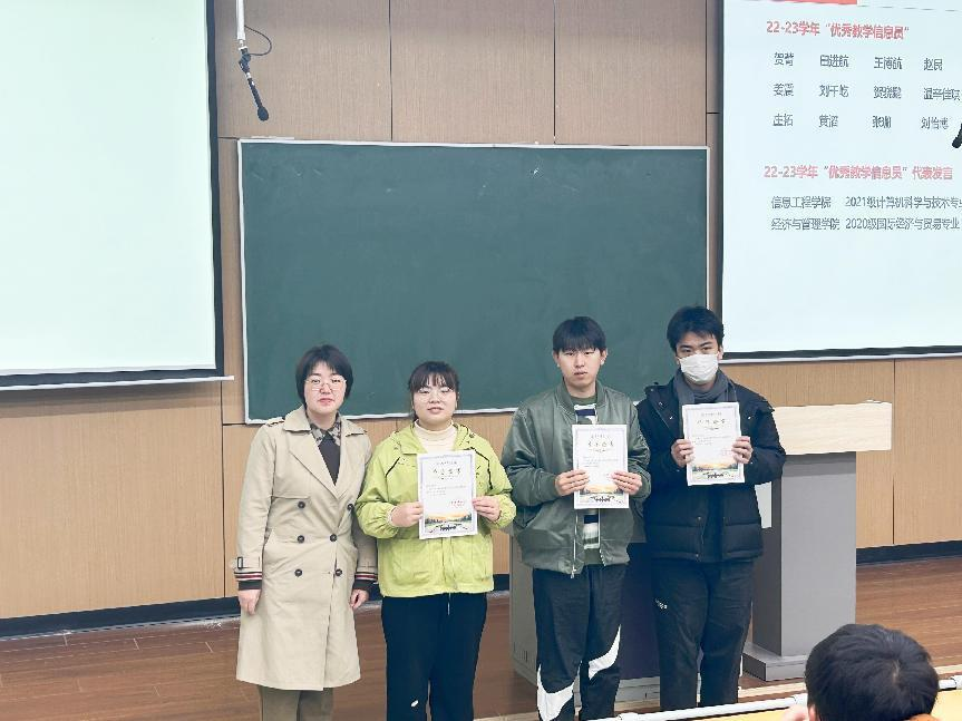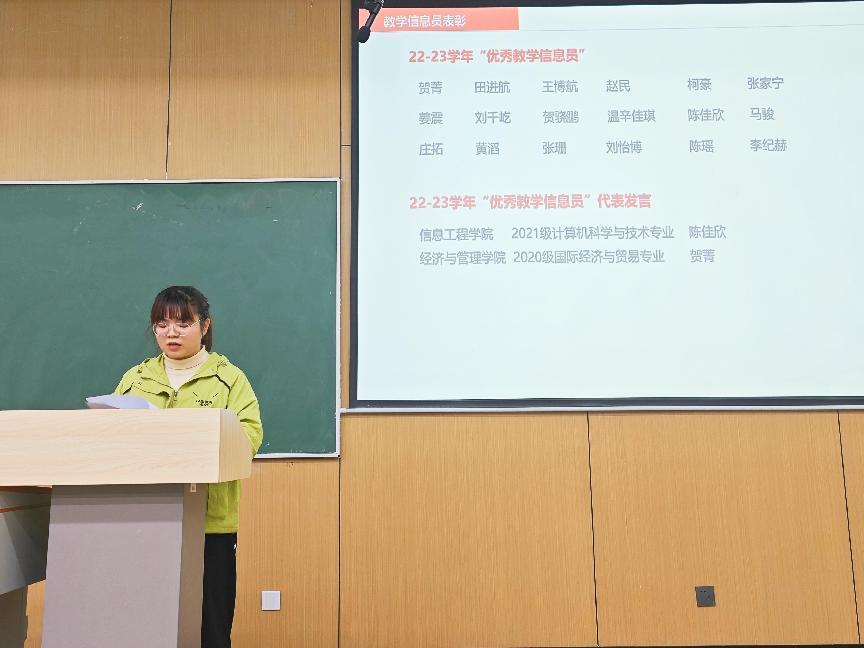 接着,质量管理与评估办公室老师为本学期新聘教学信息员颁发了聘书。质量管理与评估办公室杨志茹从“教学信息员是什么、做什么以及怎么做”三个方面解读了教学信息员的角色、职责和问题反馈方法与途径,并介绍了本学期教学信息员工作计划。