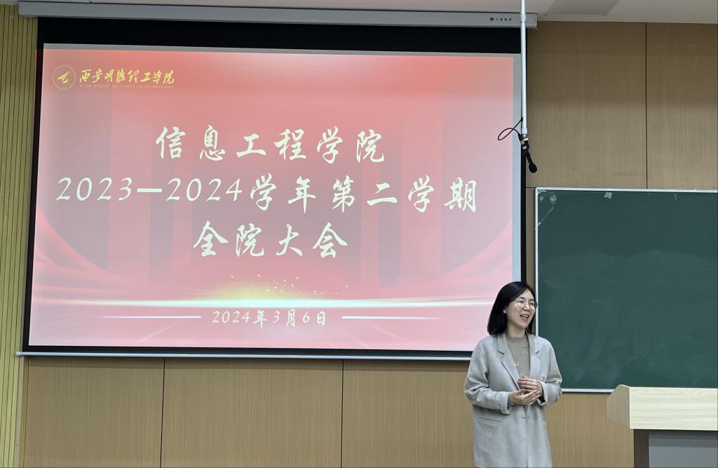 3月6日下午,信息工程学院召开2023-2024学年春季学期全院大会,会议全面总结回顾了一年来各项工作的开展情况和取得的成绩,并为新学期工作指明了方向、鼓足了干劲。学院领导班子成员和全体教职工参加,学院办公室主任尹莹主持。