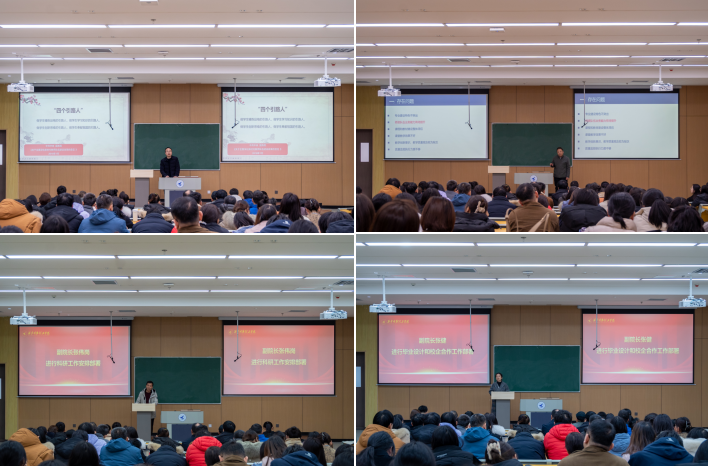 会议重点安排部署了新学期工作。党委书记肖千春安排了年度党建和思想政治工作,并从关心学院建设、担当育人使命、守护师德形象、确保安全稳定四个方面对全体教职工提出希望。副院长范晖重点围绕教学工作存在问题、2024年重点工作等方面部署了工作,并提出了“遵标准、抓质量、求创新、促能力”的工作举措和要求。副院长张伟岗从科研、学科竞赛、考研、实验室建设等四个方面作了工作提示,鼓励大家积极申报科研项目,参与学术交流,指导学科竞赛。北斗学院副院长张健着重强调了毕业设计和校企合作工作,她要求全体教师加强毕业设计指导,积极开拓实习实训基地,为学生提供更加真实、贴近实际的实习实训环境。