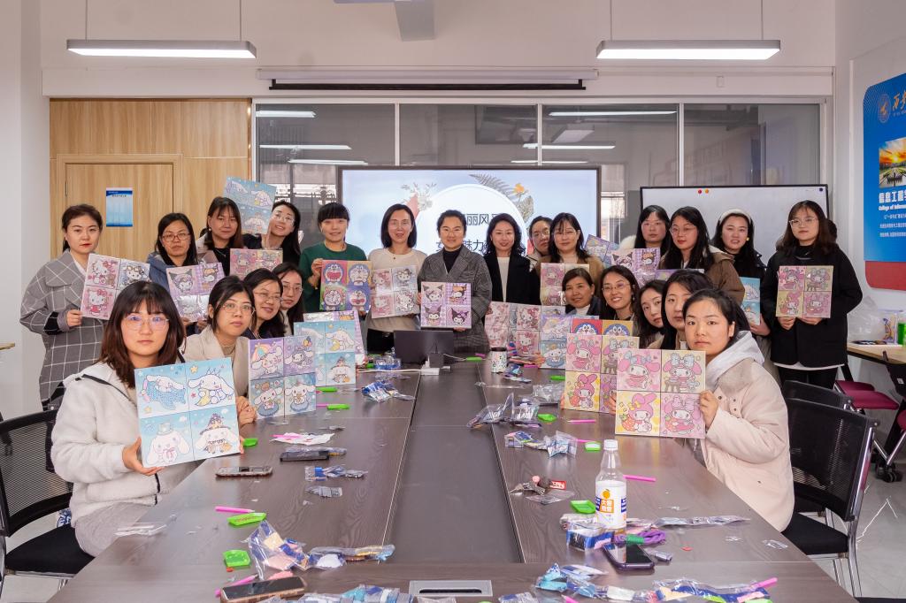 为增添节日欢乐气氛,学院工会精心准备了DIY钻石贴画手工活动。荀艳丽老师应邀上台,详细讲解手工制作的各项注意事项与技巧,引领大家进入充满创意和色彩的手工世界。在欢声笑语中,女教职工们纷纷动手制作,彼此分享心得,现场洋溢着温馨和谐的氛围。经过一番巧手匠心,一幅幅闪耀夺目的钻石画作品呈现在众人眼前,收获满满成就感与喜悦。