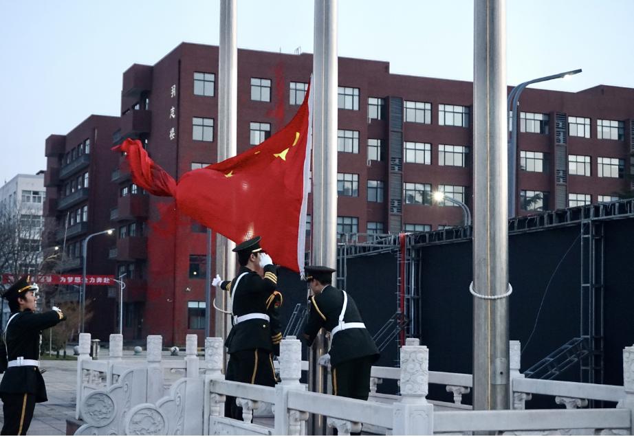7时整,国旗护卫队迈着稳健的步伐护送着国旗走向升旗台,伴着庄严的《义勇军进行曲》响起,鲜艳的五星红旗在微风中徐徐升起,师生们心怀对伟大祖国的崇敬之情向国旗致以崇高敬礼。