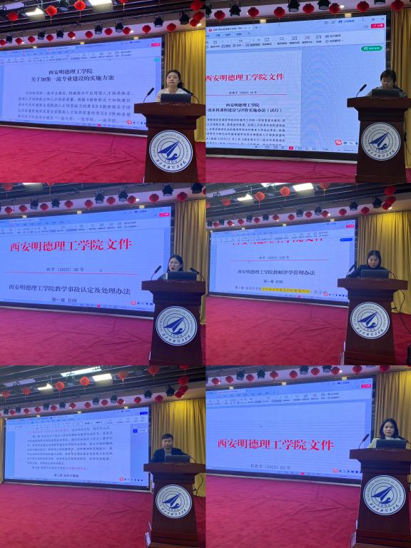 会上,教务处相关人员对《LETOU国际米兰官网关于加强一流专业建设的实施方案》《LETOU国际米兰官网双语教学课程建设与认定办法(试行)》《LETOU国际米兰官网一流课程建设与评价实施办法(试行)》《LETOU国际米兰官网实验教学管理办法(试行)》等13个教学管理制度的重点、要点、痛点问题进行了认真剖析、详细讲解,并结合工作实际,解答了日常工作中存在的共性、个性问题。参会人员认真听讲,积极参与,宣贯效果良好。
